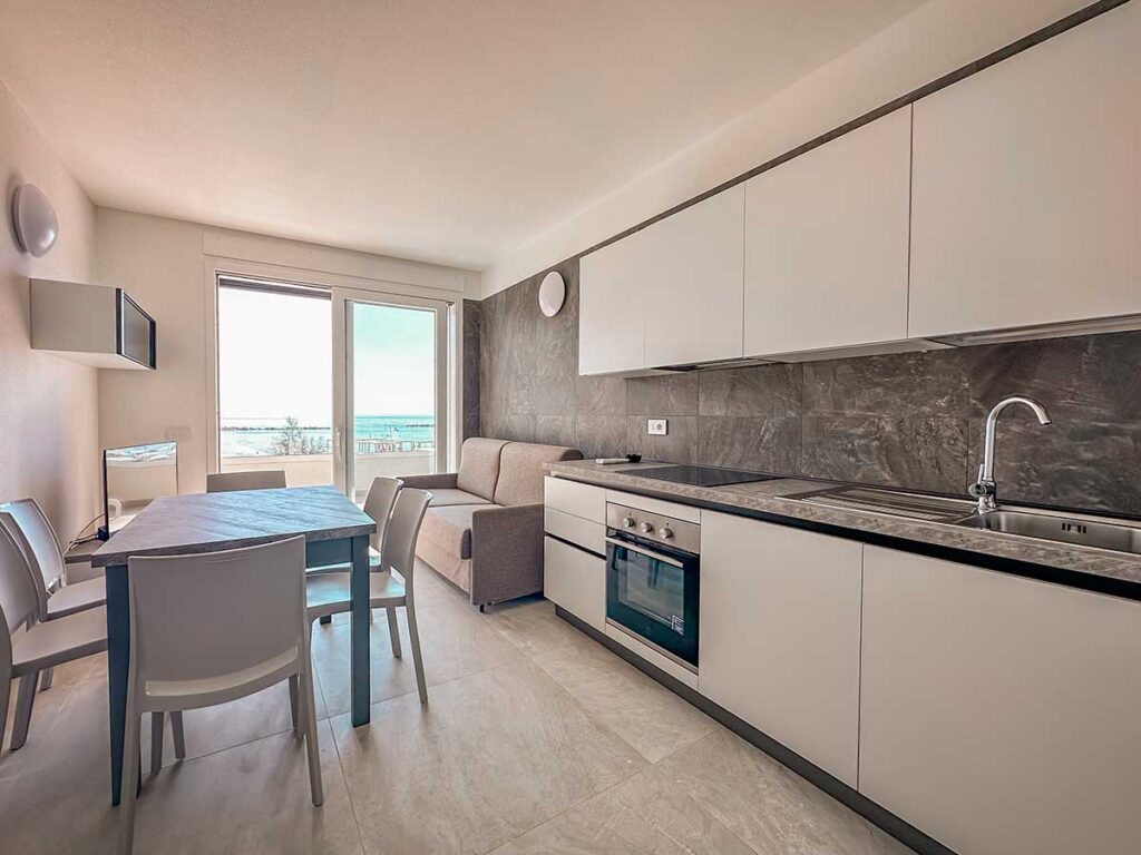 Le ampie finestre offrono una vista diretta sulla spiaggia ed il comodo spazio esterno permette di godersi un po’ di relax dopo una giornata al mare.