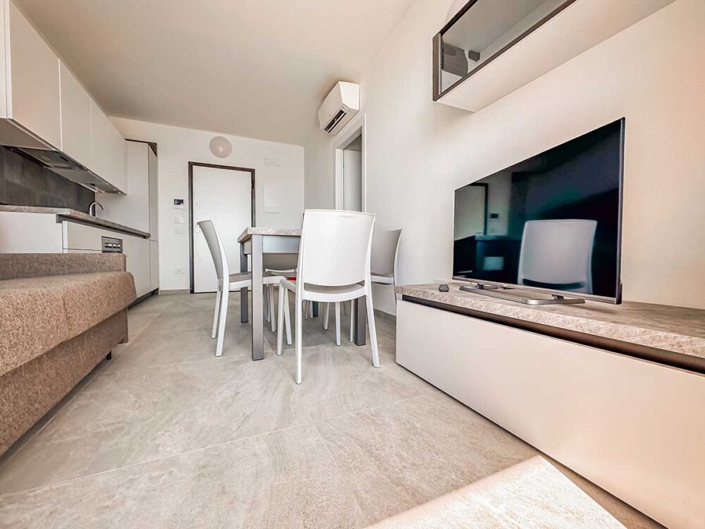 Appartamento trilocale sito al piano terra dotato di soggiorno con angolo cottura attrezzato e divano letto matrimoniale, camera da letto matrimoniale, guardaroba-ripostiglio e bagno.