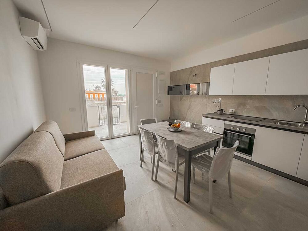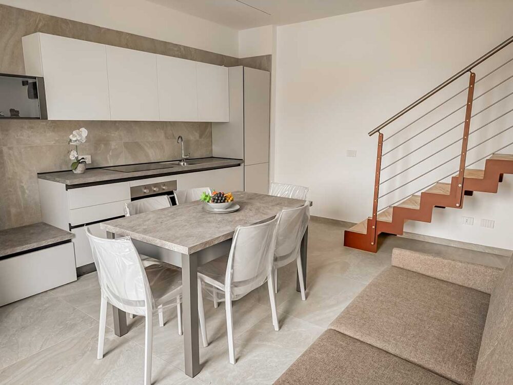 E’ un trilocale disposto su due livelli, composto al piano terra da ampio soggiorno con angolo cottura e divano letto matrimoniale ed un bagno, al piano superiore da due camere da letto ed un bagno.
